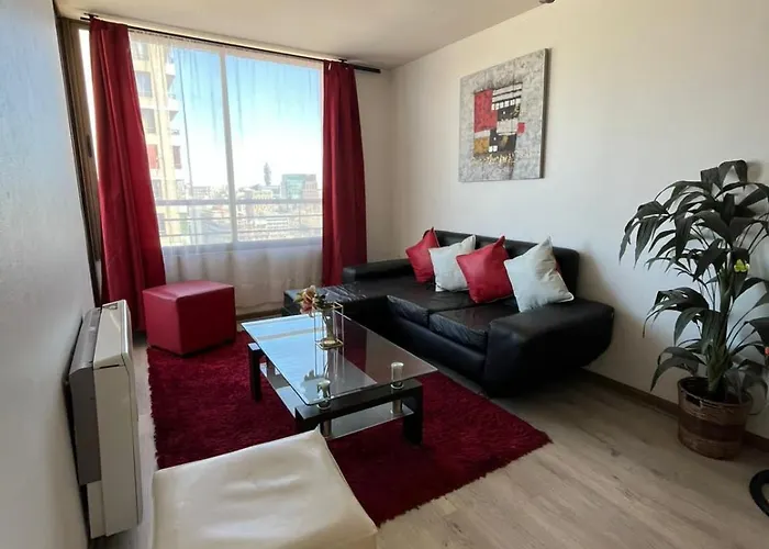 El apartamento Departamento centro hermoso 2 personas está equipado con una cocina completa. Los huéspedes que se alojan en el apartamento estarán a 19 minutos en coche del aeropuerto Santiago Arturo Merino Benítez. Los huéspedes pueden relajarse en una terraza.
